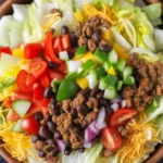 Think of this as the easiest path to a fresh, satisfying meal. We’re keeping it simple with seasoned beef or turkey, crisp lettuce, a mix of colorful veggies, and a creamy dressing that brings it all together. You can make the protein on the stove in under 10 minutes, toss everything in a big bowl, and you’re done. If you want to level it up, bake your own tortilla strips for extra crunch and flavor. I toss them with a little oil, salt, and chili powder, then crisp them in the oven until golden.