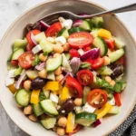 greek salad with chickpeas is my weeknight secret for something fresh, colorful, and totally satisfying when I have zero energy to cook. If you have a can of chickpeas and a few crunchy veggies, you are halfway there. No stove, no drama, just a big bowl of crisp cucumbers, juicy tomatoes, briny olives, and creamy feta tossed in a zippy dressing. I call it my reset dinner because it somehow makes me feel like I am taking care of myself even on the most chaotic days. And yes, it is that good. Ready to make a Quick and Tasty Greek Salad with Chickpeas in Just 15 Minutes?